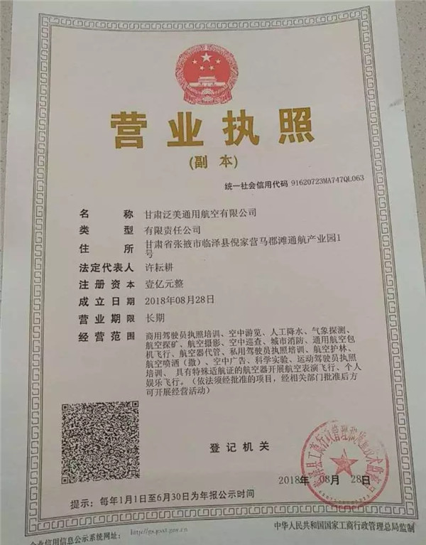 近日,甘肃泛美通用航空有限公司正式获得营业执照,开始正式运营。据悉,其是甘肃最大国企“公航旅集团”与全国最大的民航人才供应商“泛美集团”共同注资过亿打造的高品质通航公司,树立国企混改的标杆,真正把甘肃的通航产业做大做强。