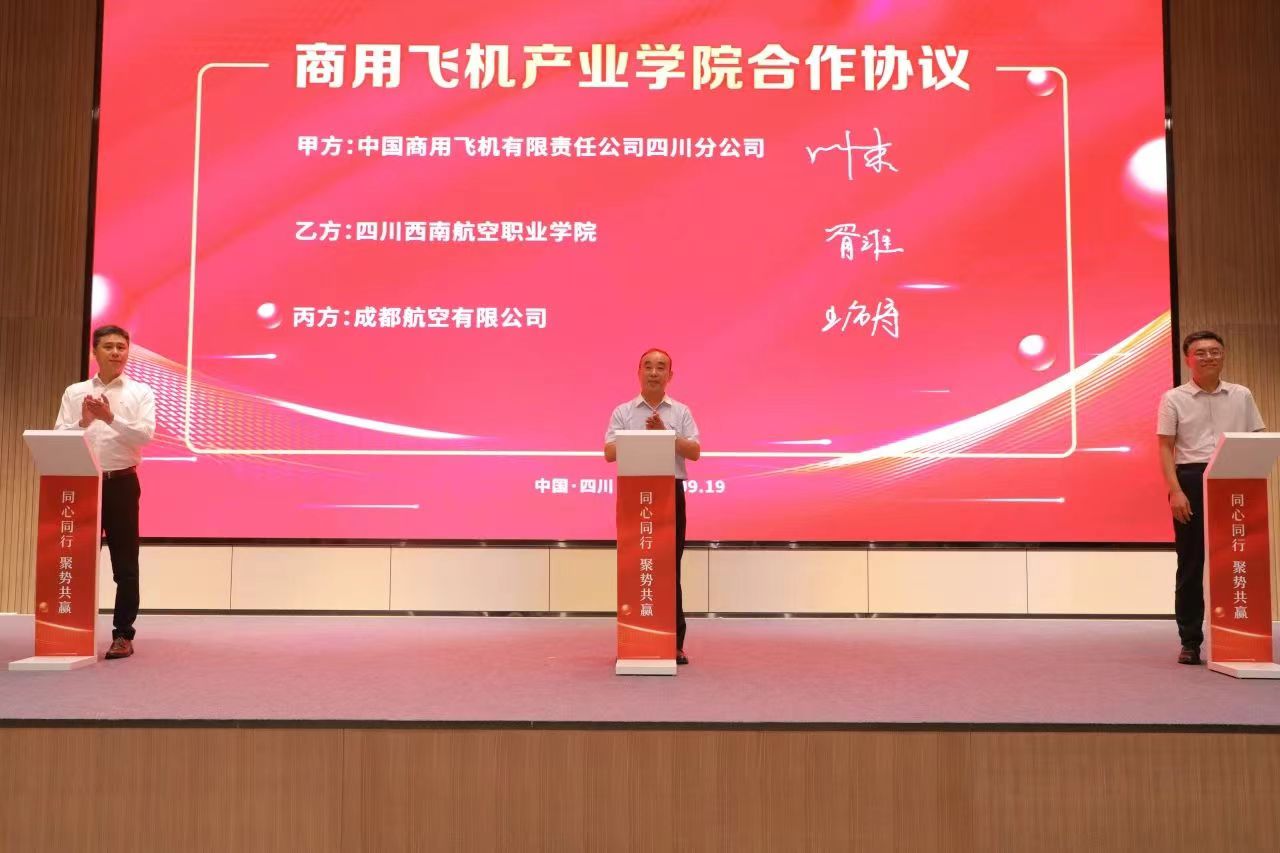 9月19日,商用飞机行业产教融合共同体成立大会在成都召开,大会进行了共同体成立、商用飞机产业学院合作签约及揭牌仪式等。据悉,此次活动由中国商飞四川公司、成都航空等6家单位共同发起,由中国商飞四川公司牵头,联合中国民航大学、四川西南航空职业学院共同组建商用飞机行业产教融合共同体。这是四川首个产教融合共同体,也是商用飞机行业首个产教融合共同体,主要任务是建立实体化的运行机制,构建产教供需对接机制,联合开展人才培养,协同开展技术攻关,有组织开发教学资源,强化支持保障力度等。