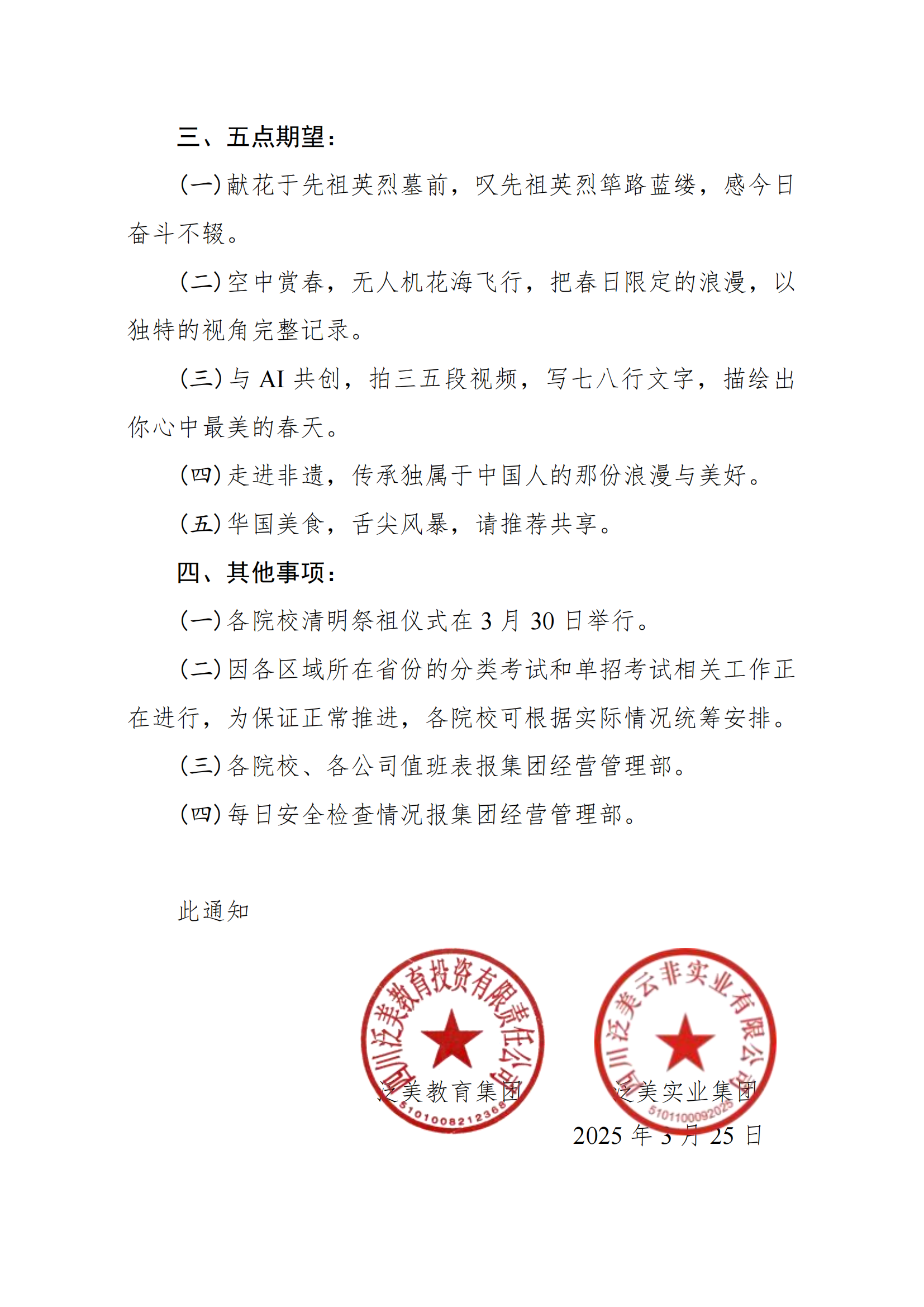 寒冬过去,万花归来。又值春和景明,一年一度的“泛美春 假”到来了,陌上繁花似锦,万里春情谁与共?好吃好玩在春天,享受祖国最美大餐的时候到了!在此,集团号召所有师生,放下书本,所有员工,放下工作,抛却烦忧,带上家人,带上爱侣,呼朋引伴,去度春假吧!揽万里山河胜景,抒胸中澎湃激情,以草木为友,用脚步写诗,尽情享受这个春天的美好吧!